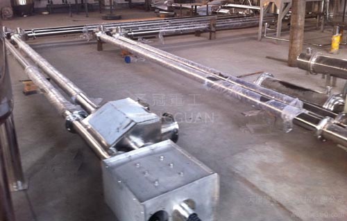 管鏈輸送機(jī)包括主動(dòng)箱(從動(dòng)箱>、8齒鏈輪、電機(jī)減速機(jī)、帶盤片的輸送鏈條,輸料管道。